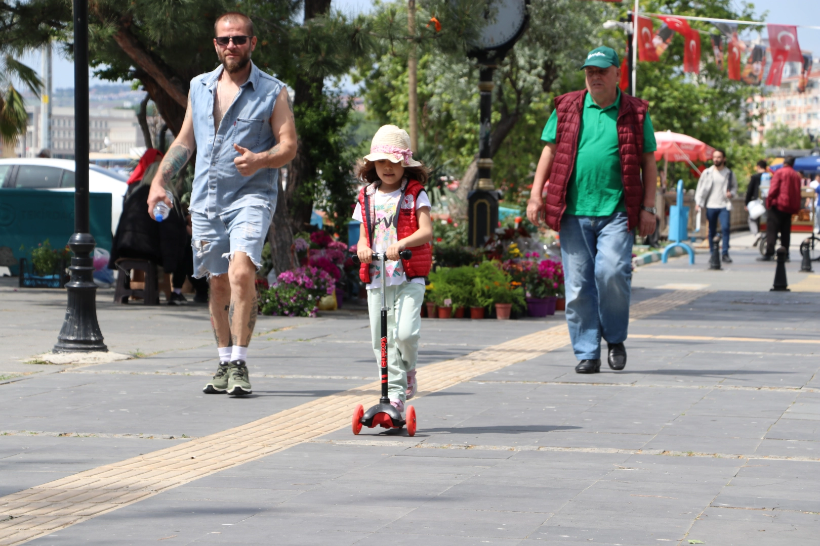 Çocuklar ise aileleriyle parklarda eğlendi, sahildeki çay bahçelerinde de yoğunluk yaşandı.