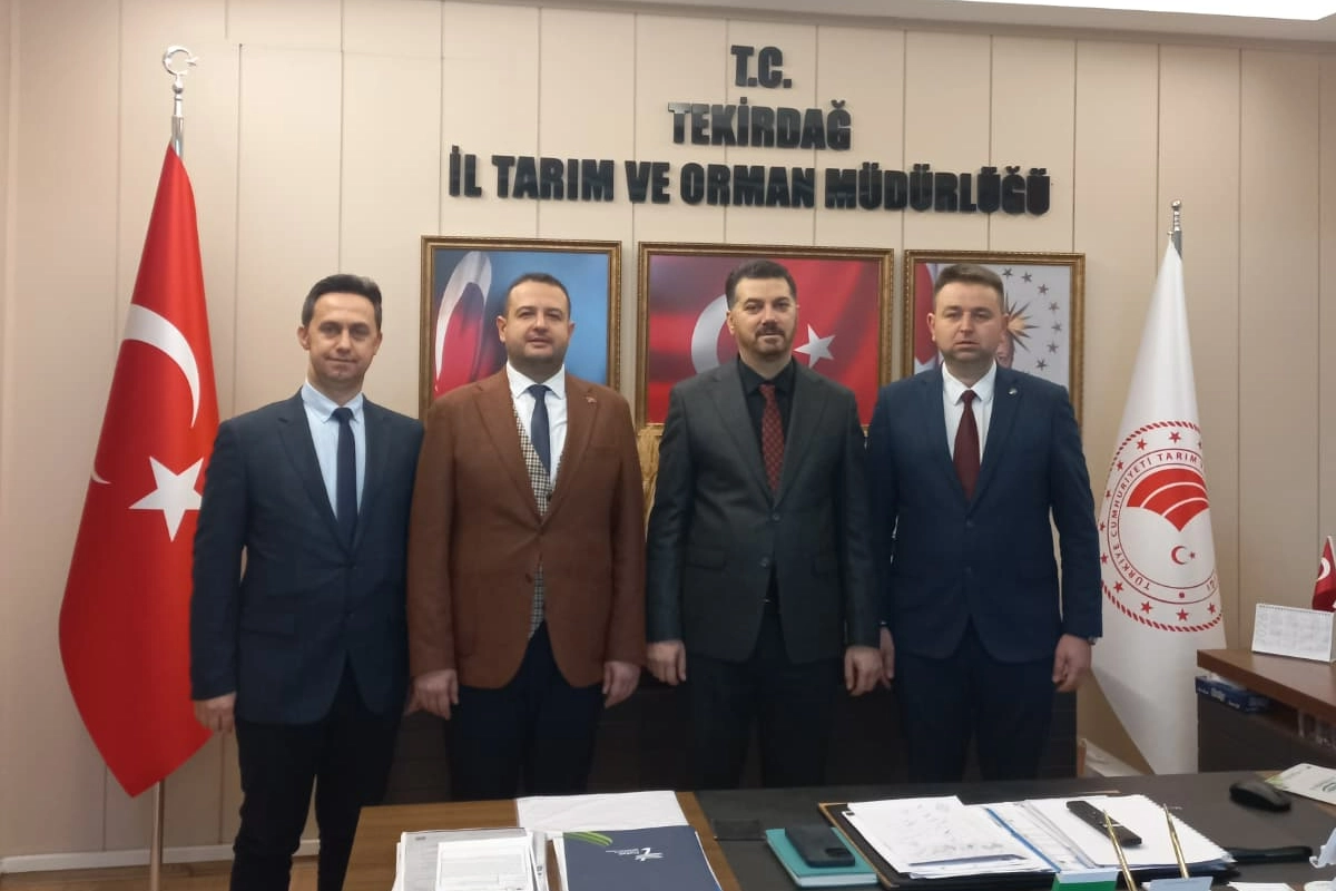 Tekirdağ İl Tarım ve Orman Müdürlüğü’nde gerçekleşen ziyarette, mesleki çalışmalar ve sektöre ilişkin konular ele alındı. İl Müdürü Mehmet Aksoy, dernek temsilcilerinin ziyaretinden duyduğu memnuniyeti dile getirerek teşekkür etti.