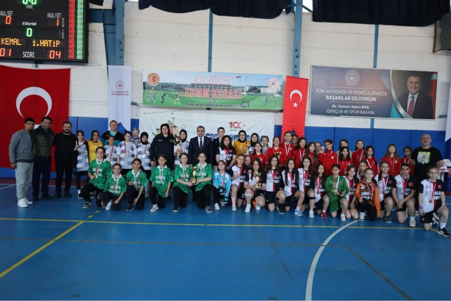 Vize Kapalı Spor Salonu’nda düzenlenen turnuva sonunda dereceye giren okullara ödülleri, Kaymakam Kemal Balaban ve protokol üyelerinin katılımıyla düzenlenen törenle takdim edildi.