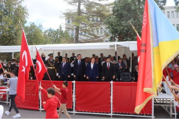 Öğrencilerin folklor gösterisinin ardından geçit töreni gerçekleştirildikten sonra bayram kutlama programı sona erdi.