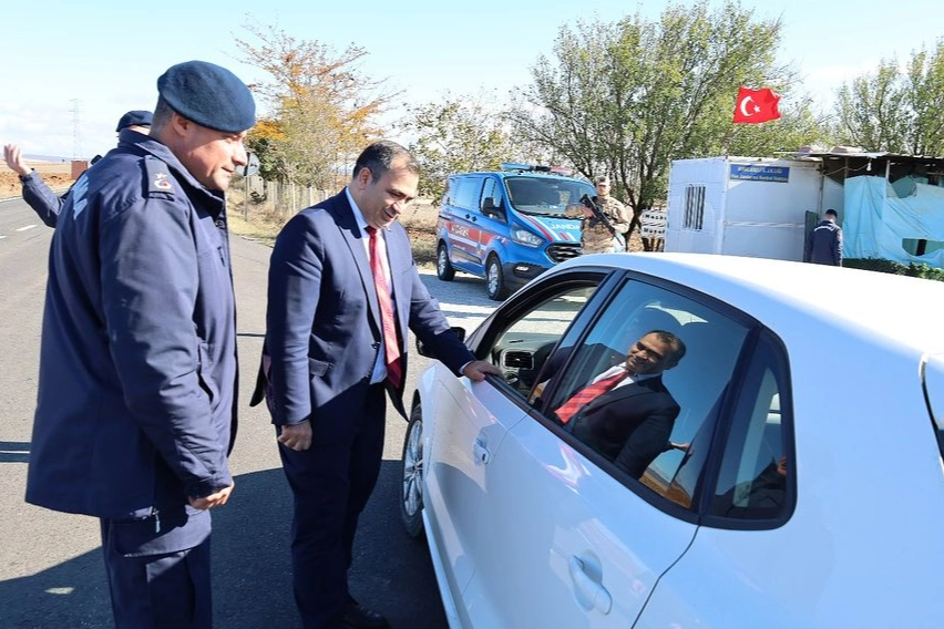 Kaymakam Balaban, İlçe Jandarma Komutanlığı Trafik ekiplerince Hasbuğa Köyü kavşağında oluşturulan asayiş denetim noktasını ziyaret etti.