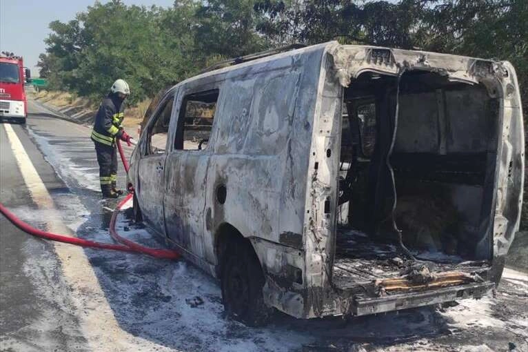 Avrupa Serbest Bölgesi mevkisinde, A.S. idaresindeki 34 ** 5566 plakalı hafif ticari araç seyir halindeyken aracın motor bölümünden alev çıkmaya başladı.