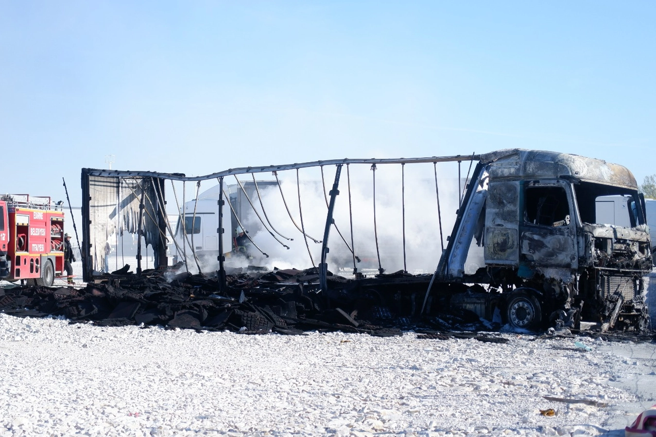 Avrupa ülkelerine götürmek için Slovakya plakalı tırına yüklediği kauçuk zemin kaplama malzemeleriyle Edirne’nin Kapıkule Sınır Kapısı'nda TIR kuyruğunda bekleyen tırda sabaha karşı henüz belirlenemeyen nedenle yangın çıktı. Kısa sürede devasa boyuta ulaşan alevleri görenlerin ihbarı üzerine olay yerine itfaiye, ambulans ve jandarma ekibi sevk edildi. Jandarma ekipleri çevre güvenliği alırken, itfaiye ekipleri de hızlıca müdahale gerçekleştirdi. Uzun uğraşlar sonucu söndürülen yangından geriye, küle dönmüş tır kaldı.