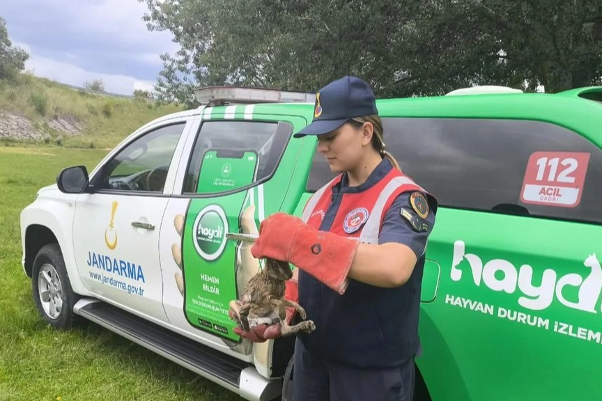 İl Jandarma Komutanlığı Çevre, Doğa ve Hayvanları Koruma Şubesi ekipleri Eriklice köyü yakınlarında devriye faaliyetinde dere kenarında yaralı bir tavşanın olduğunu fark etti.