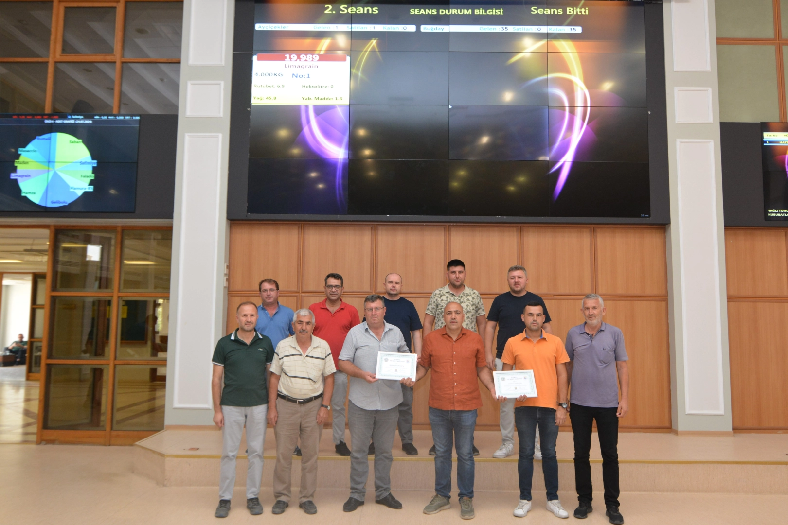 Borsa üyeleri ve üreticilerin katılımlarıyla gerçekleştirilen elektronik salon satışı neticesinde, Hatip Köyü’nden Şahin Çolpan’a ait 4 ton Ayçiçek, Kurbanlar Tarım Ürünleri Hayvancılık İth. İhr. San. ve Tic. Ltd. Şti. tarafından 19.989 TL/Ton fiyat üzerinden satın alındı.