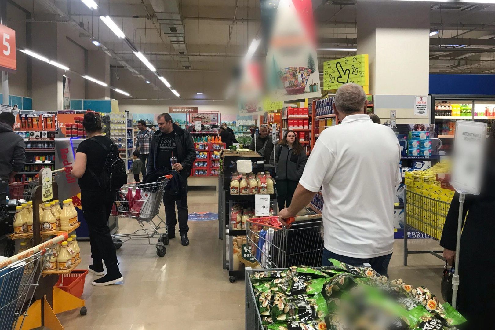 Özellikle yılbaşı gecesi için hazırlıklarını sürdüren vatandaşların, bir alışveriş merkezinin market bölümündeki yoğunluğu dikkat çekti.