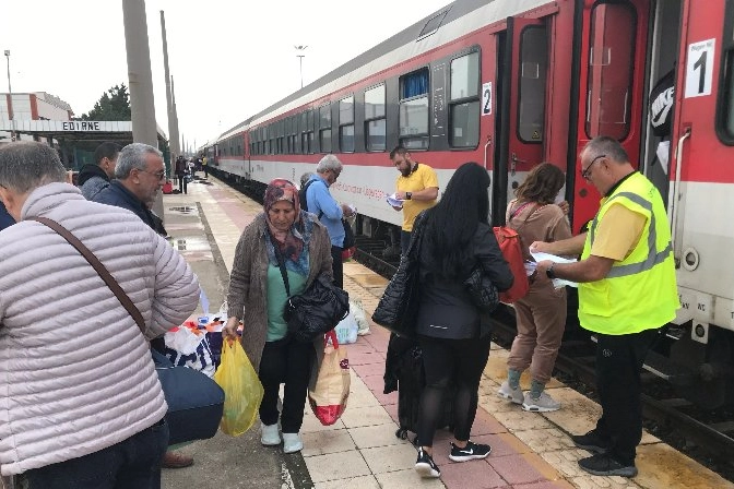 Rahat ve konforlu yolculuk yapmayı tercih eden gurbetçiler, Edirne Tren Garı’nda, arabalarını oto kuşet vagonlara yükleyerek kompartımanda yorulmadan yolculuk yapmanın keyfini çıkarıyor. Gurbetçiler, gümrükteki işlemlerinin ardından araçlarını trene yüklüyor.