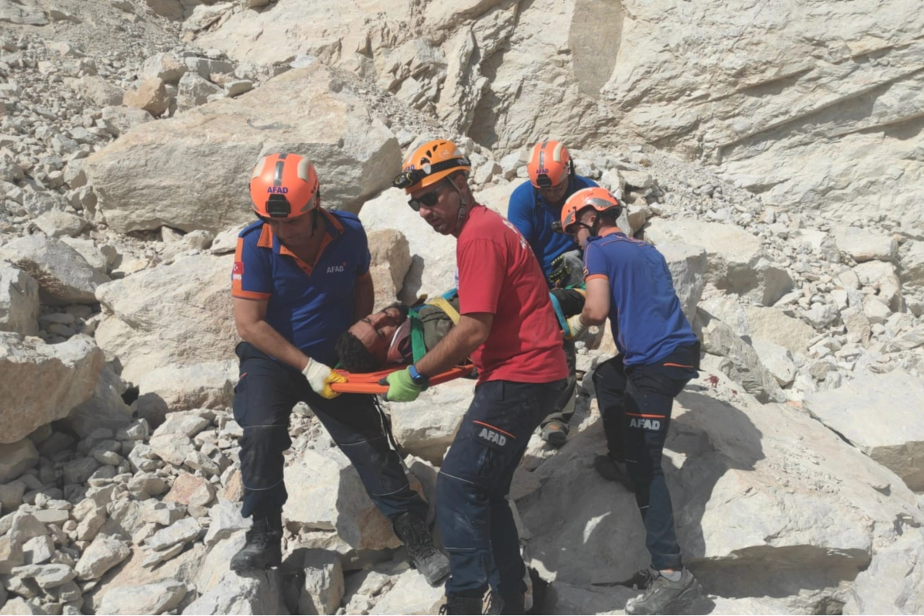 Taş ocağı işçileri durumu jandarma, sağlık ekipleri ve AFAD'a haber etti.