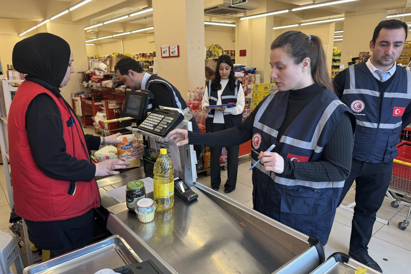 Görevliler, temel gıda ve ihtiyaç ürünlerinin etiketlerini inceledi.