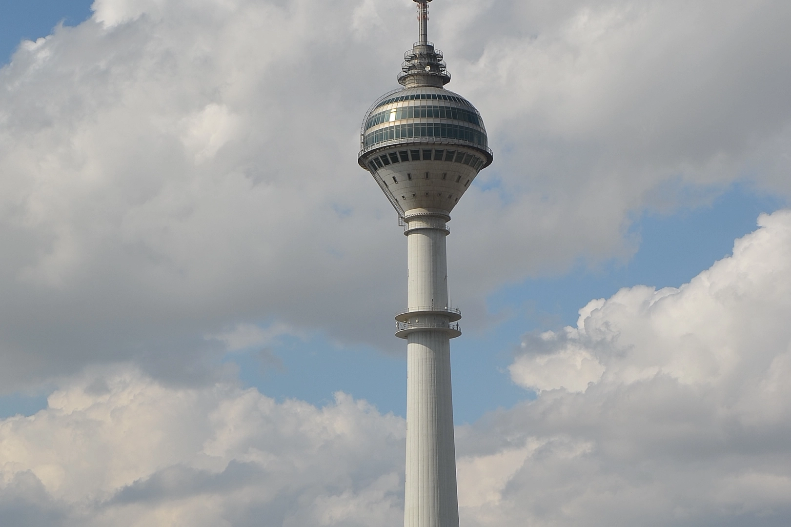 Kulenin taşıyıcı bloğunun üzerinde 5 katlı küresel bir bölüm mevcuttur. Küresel bölüm vericilerin anten sistemlerinin bağlantılarına ayrılmıştır. Kule betonarmesinin son bulduğu noktada genişleyen ve döner şekilde 280 kişi kapasiteli döner restoran yer almaktadır.