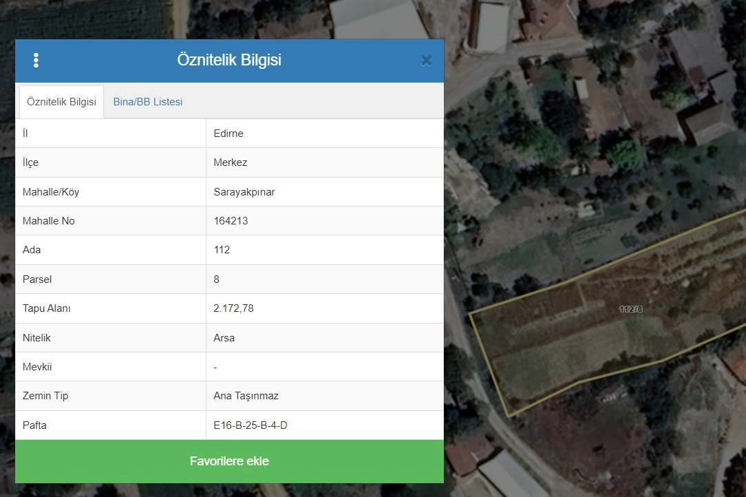 UYAP’ta yer alan ilana göre; Edirne İl, Merkez İlçe, SARAYAKPINAR Mahalle/Köy, 112 Ada, 8 Parsel, Taşınmaz tapuda arsa vasfında olup taşınmaz üzerinde parselin çevresinde ve orta kısmında uzun kenarı boyunca boydan boya tel örgünün çekilmiş olduğu, 2 ayrı kısım olarak kullanılan parselde 2 adet demir kapı bulunmaktadır. Yine taşınmaz üzerinde 11 adet 3 yaşında Isparta gülü, 46 adet 3 yaşında Aronya bitkileri bulunmaktadır. Taşınmaz köy içerisinde yer almaktadır. Ulaşım sorunu yoktur ve tüm altyapı hizmetlerinden yararlanmaktadır. Taşınmazın tapu kaydında 3402 S.Y.'nın 22/A maddesi gereğince yenilemenin tescili beyanı olan arsa Edirne 3. (Sulh Hukuk Mah.) Satış Memurluğu, 2022/37 Satış dosya numarasıyla satışa çıkarıldı.