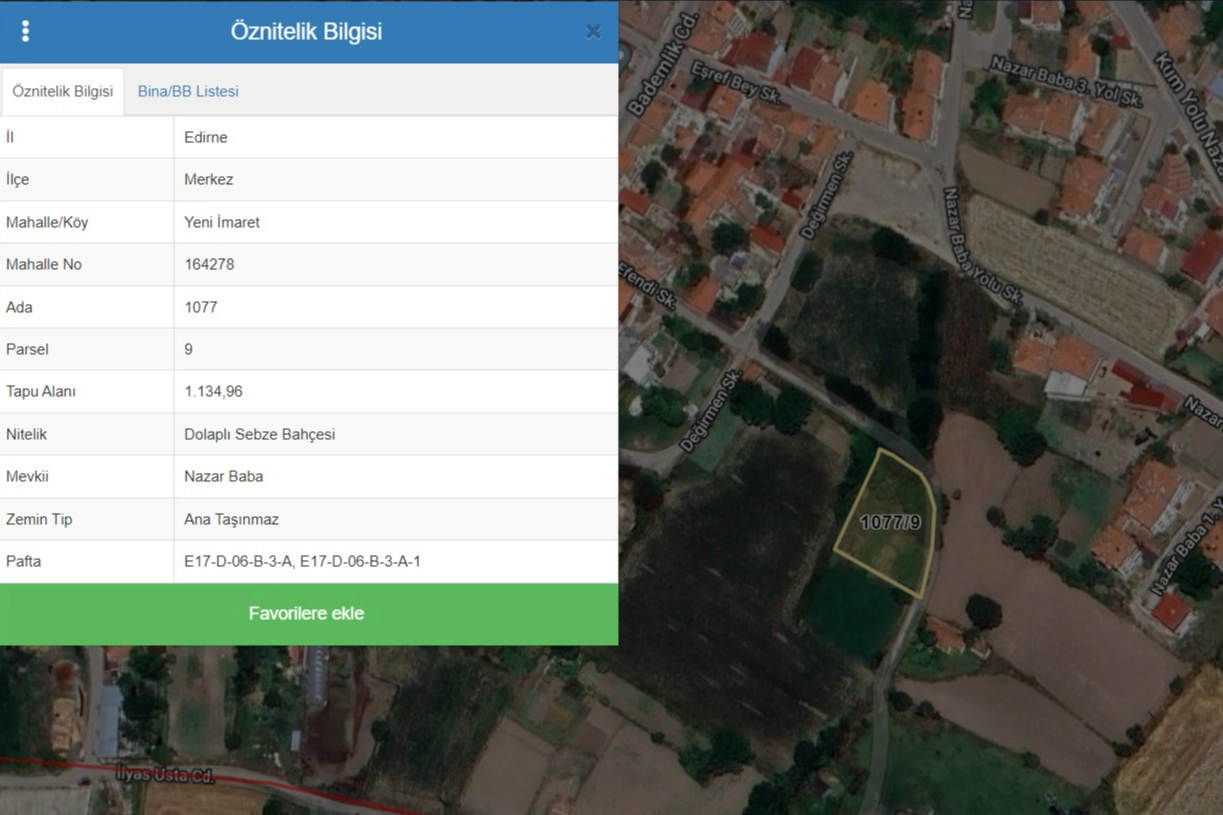 UYAP’ta yer alan ilana göre Edirne İli, Merkez İlçe Yeni İmaret Mah., Nazarbaba Mevkii, 1077 Ada, 9 Parsel, tapuda dolaplı sebze bahçesi olarak kayıtlı olup sulu tarım arazisi Edirne 3. (Sulh Hukuk Mah.) Satış Memurluğu, 2022/29 Satış dosya numarasıyla satışa çıkarıldı.