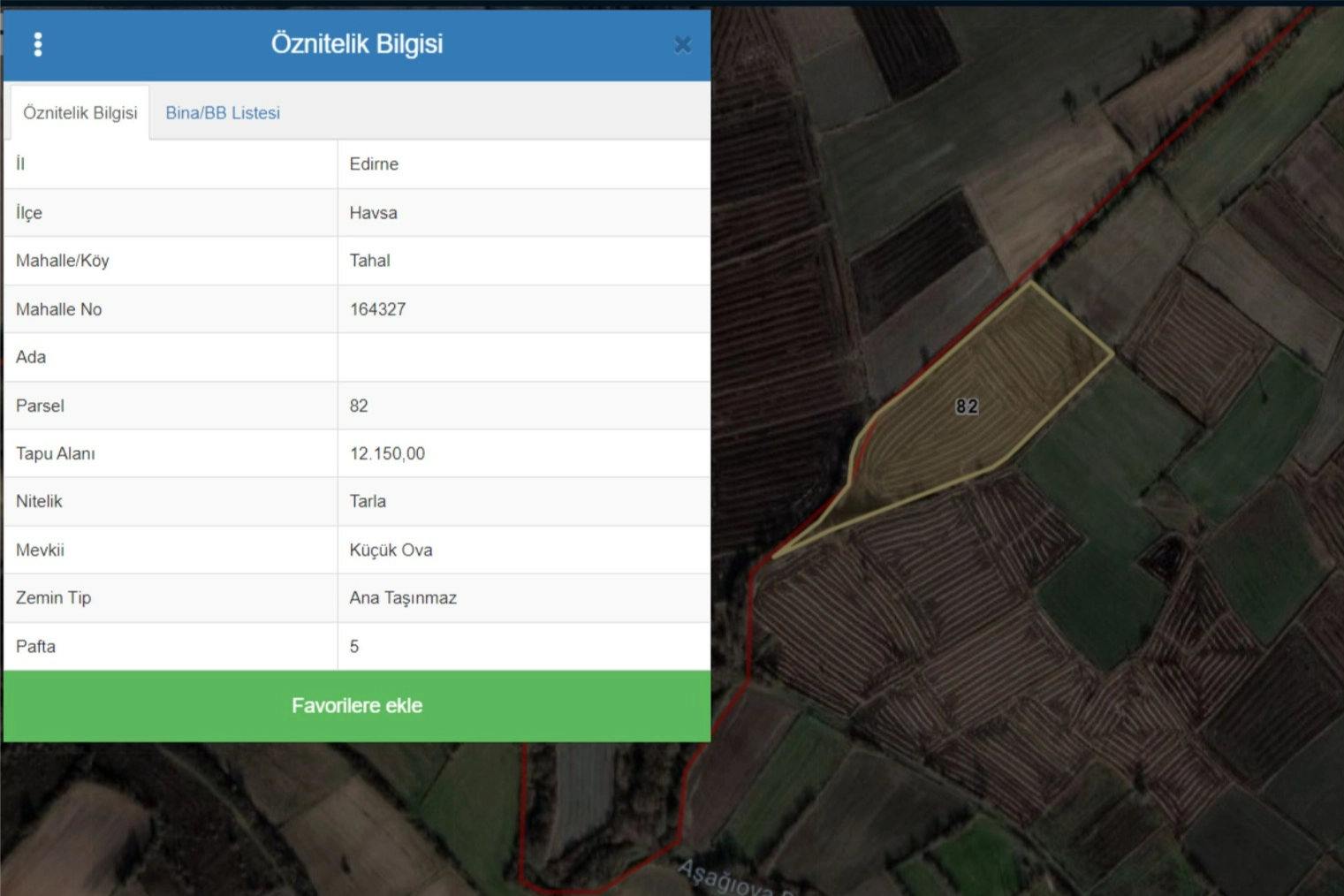 UYAP’ta yer alan ilana göre Edirne İli, Havsa İlçesi, Tahal Köyü, Küçük Ova Mevkii, 82 parsel, 12.150,00 m², Tarla vasıflı taşınmaz Edirne İcra Dairesi, 2019/15619 Icra dosya numarasıyla satışa çıkarıldı.