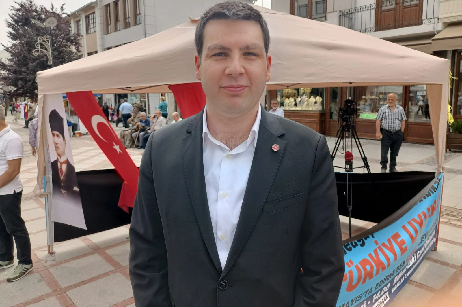 Vatan Partisi Genel Sekreteri Özgür Bursalı, Edirne'yi ziyaret ederek Saraçlar Caddesi'nden basın açıklaması yaptı.