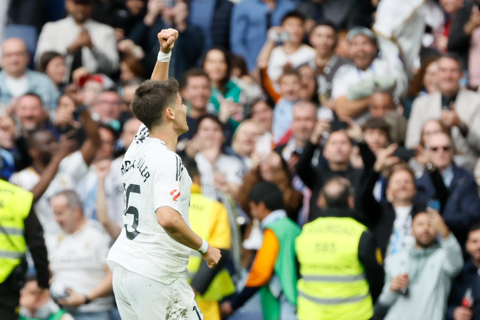 La Liga’nın 34. haftasında Real Madrid, Santiago Bernabeu'da Celta Vigo karşı karşıya geldi. Madrid, 33. dakikada milli futbolcu Arda Güler'in attığı golle 1-0 öne geçti. Ev sahibi ekip, 39. dakikada Kylian Mbappe'nin kaydettiği golle skoru 2-0 yaptı ve ilk yarı bu skorla sona erdi. Real Madrid, ikinci yarının 48. dakikasında Arda'nın asistinde Mbappe farkı 3'e çıkardı. Konuk takım daha sonra 69. dakikada Javier Rodriguez ve 76. dakikada da Williot Swedberg'in attığı gollerle skoru 3-2'ye getirdi. Kalan dakikalarda başka gol olmayınca Carlo Ancelotti'nin öğrencileri sahadan 3-2'lik skorla galip ayrıldı. Real Madrid, bu sonuçla puanını 75'e çıkararak, şampiyonluk yarışında Barcelona'yı takibini sürdürdü. Celta Vigo ise 46 puan 7. sırada kaldı. Milli futbolcu Arda Güler 11'de başladığı karşılaşmada 83. dakikada yerini Brahim Diaz'a bıraktı. Arda, bu maçla birlikte ligde üst üste 2, toplamda 3. golünü kaydetti. İspanya Kral Kupası'nda da 2 golü bulunan 20 yaşındaki futbolcu, bu sezonki gol sayısını da 5'e çıkardı.