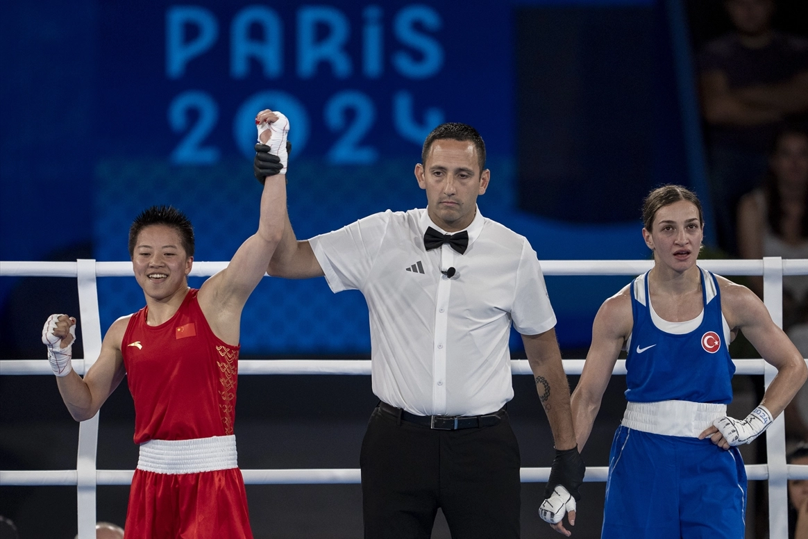 Fransa'nın başkenti Paris'teki Philippe-Chatrier Kortu'nda boks branşının kadınlar 50 kilo final mücadelesi yapıldı.