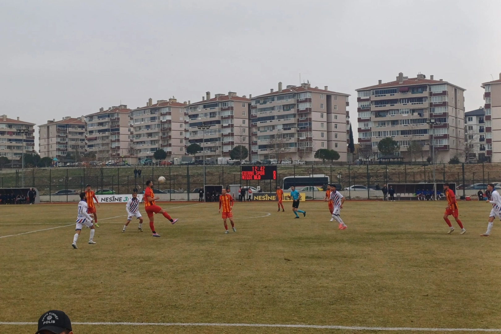 Maç, iki takımın dengeli oyunu ile başladı. İlk yarıda iki takımda çok fazla hücum üretemezken; 23’üncü dakikada Niğde Belediye Spor oyuncusu 52 numaralı Abdullah Berkay Ekmekçi ve 43’üncü dakikada Edirnespor’dan 3 numaralı oyuncu Oğulcan Şahin sarı kart gördü. İlk yarı başladığı gibi 0-0 tamamlandı.