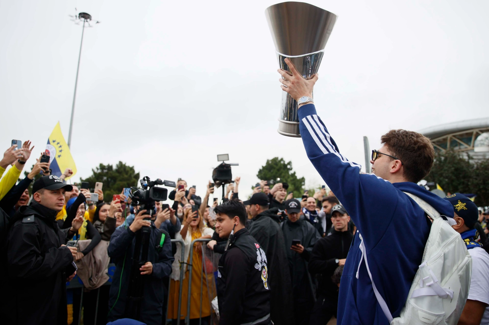 Fenerbahçe Erkek Basketbol Takımı, Birleşik Arap Emirlikleri’nin başkenti Abu Dabi’de düzenlenen Final Four final maçında Fransız ekibi Monaco’yu 81-70’lik skorla mağlup ederek şampiyonluğunu ilan etti. Sarı-lacivertlilerin bu zaferi yurdun dört bir yanında kutlanırken, takım ve teknik heyet de bugün İstanbul’a ulaştı. Kafile özel uçakla Sabiha Gökçen Havalimanı Genel Havacılık Terminali’nden giriş yaparken, taraftarlar da yağmura rağmen alana geldi. Taraftarların yanına giderek onları alkışlayan Tarık Biberovic, daha sonra duygularını mikrofonlara paylaştı. Sarı-lacivertli taraftarlara teşekkür eden Tarık, "Gerçekten hepimiz çok mutluyuz ve hala Avrupa Fatihi olduğumuzun farkına varmaya çalışıyoruz. İnanılmaz bir duygu. Bu akşam güzel bir şekilde kutlayıp, yarın Bağdat Caddesi’ne gitmek. Tek düşündüğüm bunlar. Uçakta şarkılarla öyle bir mutluyduk ki inanılmaz bir duygu" ifadelerini kullandı. Organizasyonda favori olmadıklarına yönelik soruya Tarık şu yanıtı verdi: "Bunu anlamıyorum. Ben sezon başından beri söylediğim bir şey var; inanılmaz bir kadroya sahibiz. Bunu da gösterdik. Herkes kimin ne olduğunu gösterdik. Bu takıma güveniyorum ve gerçekten kupayı hak ettik." Sarı-lacivertli taraftarlar hakkında da konuşan genç oyuncu, "Taraftarlarımız her yerde bizi destekliyorlar. Sezon boyunca hiç yanımızdan ayrılmıyorlar. Onlara sahip olduğumuz için şükrediyorum" diye konuştu. Takımın ABD'li oyuncusu Errick McCollum ise, "Bu aslında bir ekip işi. Tüm takım arkadaşlarımın, teknik ekibin, sağlık ekibinin, bizi sene boyu destekleyen, oraya gelen taraftarlarımızın emekleri sonucunda oldu. Bu başarıyı hep birlikte elde ettik. Ben elimden geleni yaptım ama arkadaşlarım, koçlarım, benim en iyi şekilde katkı vermemi sağladılar. Onlara teşekkür ediyorum" dedi. Kaptan Melih Mahmutoğlu, kupayla taraftarların bulunduğu alana giderken, karşılıklı tezahüratlar yapıldı. Daha sonra basın mensuplarına açıklamalarda bulunan Mahmutoğlu, takımla gurur duyduğunu belirterek, "Bu takım bu kupayı hak ettiğini bütün sene gösterdi. Taraftarımıza, ülkemize, camiamıza bu kupa armağan olsun. Fenerbahçe her zaman buralarda; Final Four’da, şampiyonluklarda. Çalışan tüm ekiple gurur duyuyorum, gerçekten burada emek çok. Herkes bu kupayı kazanmak için çok emek verdi. Sonunda da kupaya ulaştığımız için çok mutluyuz. Önümüzde Türkiye Ligi var. Onu da kazanacağız. Tüm kupaları almak istiyoruz, çünkü bu camia bunu hak ediyor" ifadelerini kullandı. Fenerbahçe Beko Başantrenörü Sarunas Jasikevicius da taraftarların yanına giderek mutluluklarına ortak oldu. Son olarak da tüm takım taraftarlarla karşılıklı tezahüratlar yaptı.