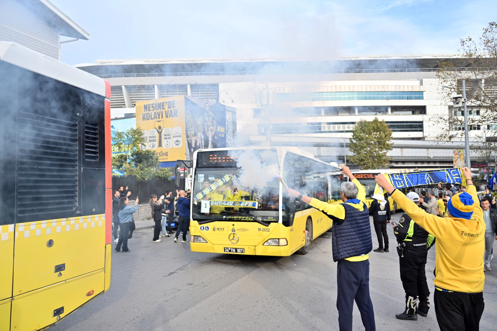 Chobani Stadı'nda toplanan sarı-lacivertli taraftarlar, İETT'ye ait otobüslerle Tüpraş Stadı'na doğru yola çıktı.