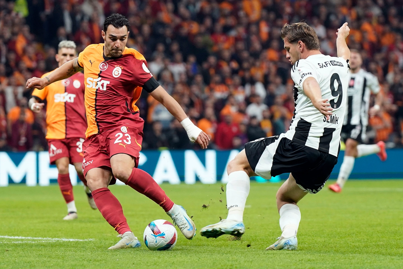 Trendyol Süper Lig’in 10. haftasında derbide Galatasaray, sahasında Beşiktaş ile karşı karşıya geliyor. Mücadelenin ilk yarısı, ev sahibi ekibin 1-0'lık üstünlüğüyle sona erdi. Maçtan dakikalar (İlk yarı) 4. dakikada Joao Mario’nun sağ taraftan yerden ortasında Gedson’u geçen top Semih Kılıçsoy’da kaldı. Bu oyuncunun ceza sahası içi sol çaprazdan vuruşunda top yan ağlarda kaldı. 6. dakikada Sallai’nin sağ taraftan uzun pasında uzak kale direği dibinde topla buluşan Yunus’un gelişine vuruşunda kaleci Ersin, topu kornere çeldi. 13. dakikada Sara’nın sağ taraftan kullandığı serbest vuruşta Davinson Sanchez’in uzak kale direğinde yaptığı kafa vuruşunda meşin yuvarlak ağlara gitti. 1-0 44. dakikada Immobile'nin pasında sağ tarafta topla buluşan Rafa Silva'nın ceza sahası içine girdikten sonra sağ çaprazdan vuruşunda meşin yuvarlak kaleci Muslera'da kaldı. 45. dakikada Davinson'un pasında sağ çaprazda topla buluşan Icardi'nin çaprazdan vuruşunda savunmaya da çarpan top, az farkla uzak kasle direğinin yanında kornere gitti. Hakemler: Arda Kardeşler, Ceyhun Sesigüzel, Süleyman Özay Galatasaray: Fernando Muslera, Kaan Ayhan, Davinson Sanchez, Abdülkerim Bardakcı, Barış Alper Yılmaz, Lucas Torreira, Gabriel Sara, Roland Sallai, Yunus Akgün, Victor Osimhen, Moura Icardi Yedekler: Günay Güvenç, Kerem Demirbay, Dries Mertens, Berkan Kutlu, Hakim Ziyech, Elias Jelert, Victor Nelsson, Michy Batsuayi, Efe Akman, Metehan Baltacı Teknik Direktör: Okan Buruk Beşiktaş: Ersin Destanoğlu, Jonas Svensson, Felix Uduokhai, Emirhan Topçu, Arthur Masuaku, Cher Ndour, Gedson Fernandes, Joao Mario, Rafa Silva, Semih Kılıçsoy, Ciro Immobile Yedekler: Göktuğ Baytekin, Onur Bulut, Tayyip Talha Sanuç, Al Musrati, Salih Uçan, Bahtiyar Zaynutdinov, Ernest Muçi, Can Keleş, Emrecan Terzi, Mustafa Hekimoğlu Teknik Direktör: Giovanni van Bronckhorst Gol: Davinson Sanchez (dk. 13) (Galatasaray) Sarı kartlar: Kaan Ayhan, Barış Alper Yılmaz (Galatasaray)