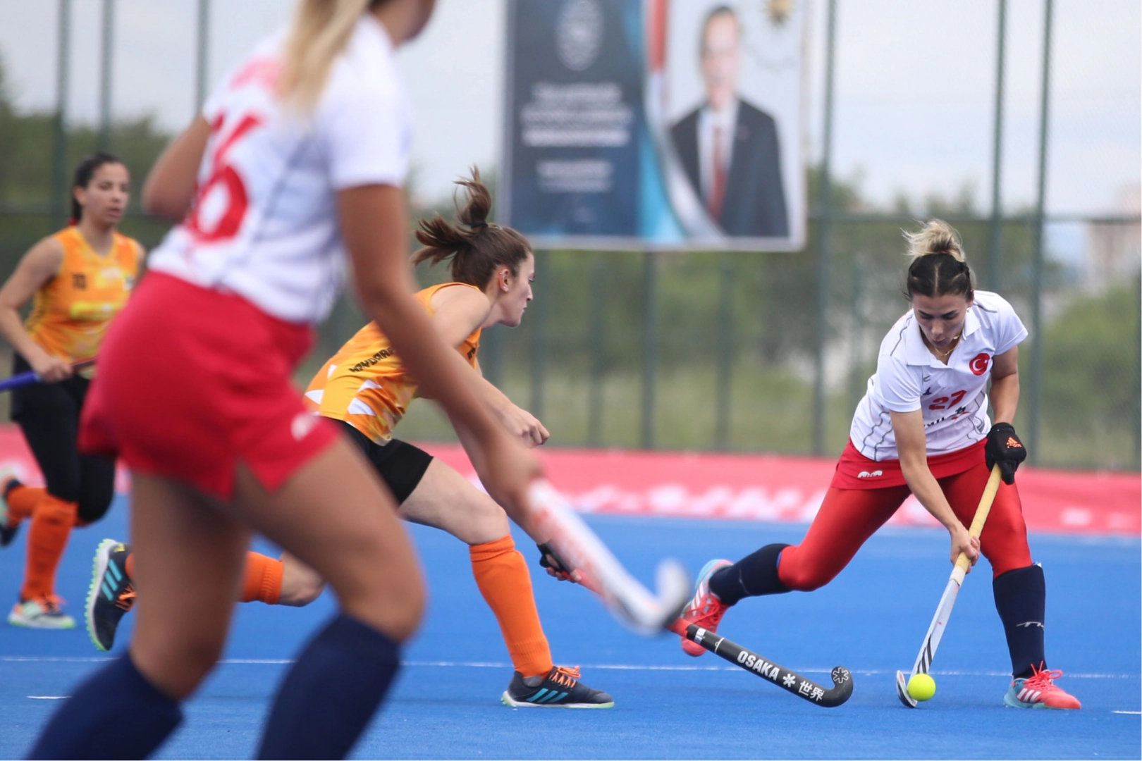 Çim hokey sahasında üçüncü gün karşılaşmaları erkek ve kadın takımların maçlarıyla sürüyor.