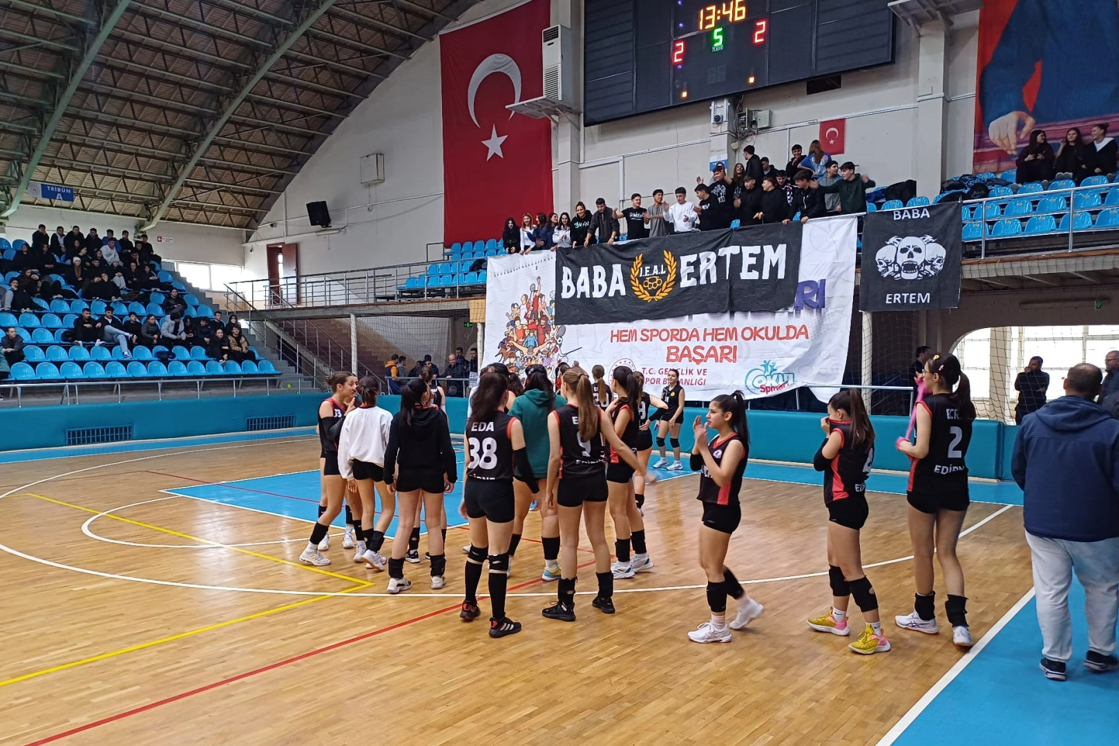 Edirne'de Mimar Sinan Spor Salonu'nda Okullar Arası Genç Kızlar Voleybol İl Şampiyonluğu karşılaşmalarında 3'üncülük maçı oynandı. Turnuvada derece için sahaya çıkan Keşan Fen Lisesi ve Edirne İlhami Ertem Anadolu Lisesi kıran kırana mücadele etti. İlk seti, karşılıklı sayılar ile İlhami Ertem Anadolu Lisesi 25-21 skorla kazanarak durumu 1-0'a getirdi.