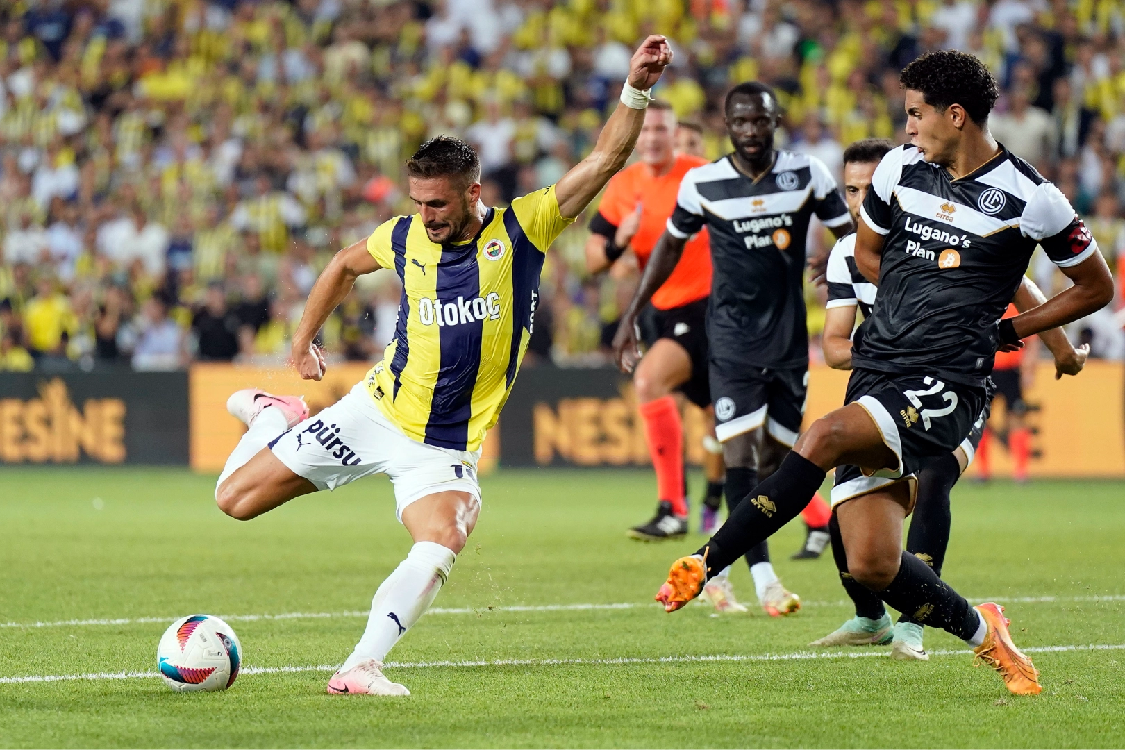 7. dakikada Bottani'nin sol taraftan yaptığı ortada Djiku'nun uzaklaştırmak istediği topla buluşan Mahmoud'un ceza yayı önünden vuruşunda top filelerle buluştu. 0-1 17. dakikada Bottani'nin pasında topla buluşan Aliseda'nın ceza sahası sağ çaprazdan sert vuruşunda meşin yuvarlak üstten auta gitti. 25. dakikada Zanotti'nin sağ taraftan ceza sahasına yerden pasında Valenzuela'nın vuruşunda top kaleci Livakovic'in müdahalesiyle az farkla üstten kornere çıktı. 41. dakikada Dzeko topu sağ taraftan içeriye pasında penaltı noktası üzerinde Ferdi Kadıoğlu'nun vuruşunda top üstten auta gitti. 51. dakikada Tadic’in sağ taraftan kullandığı köşe vuruşunda altı pas çizgisi üzerinde Djiku’nun kafa vuruşunda meşin yuvarlak az farkla üstten auta gitti. 59. dakikada Mert Hakan’ın sağ taraftan kullandığı serbest vuruşta penaltı noktası önünde iyi yükselen Dzeko’nun kafa vuruşunda top ağlarla buluştu. 1-1 67. dakikada Ferdi’nin ceza yayının solundan sert vuruşunda kaleci Saipi, sol direk dibine giden meşin yuvarlağı oyun alanına geri çeldi. 90+3. dakikada sağ kanattan İrfan Can’ın ceza sahasına ortasında arka direkteki Tadic, meşin yuvarlağı kafayla kale önüne indirdi. Kale önünde müsait pozisyondaki Szymanski topu ağlara gönderdi. 2-1