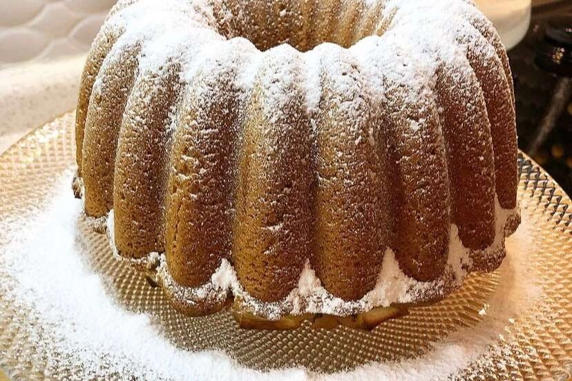 Soğuyan keke pudra şekeri serpelim ve servis yapalım.