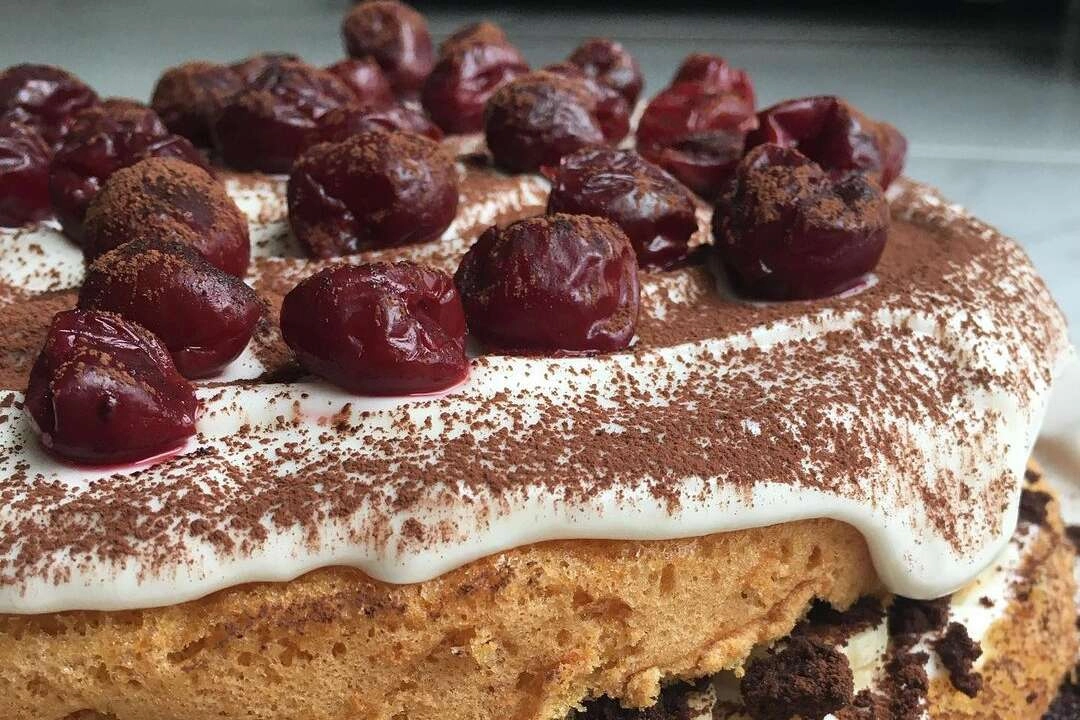Pandispanyayı ikiye bölelim. Tabanını bir çay bardağı süt ile 2 yemek kaşığı suyu karıştırıp, iyice ıslatalım. Hazırladığımız kremadan koyup muz dizelim ve ufaladığımız kekleri üzerine koyalım ve diğer pandispanyayı da üzerine alalım ve tekrardan süt ile ıslatalım, kremayı yayıp üzerine vişne dizelim ve elek yardımı ile kakao serpelim.