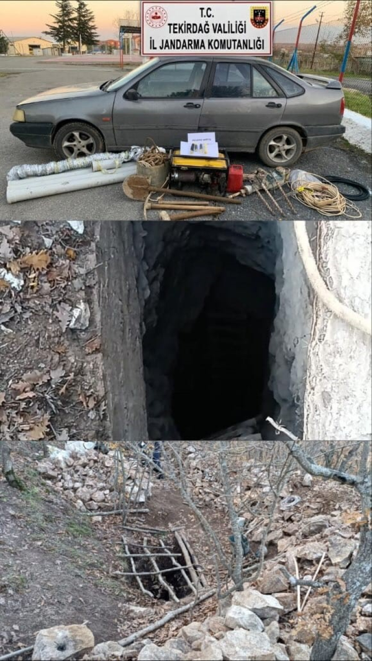 Saray ilçesi Ayvacık Mahallesi’nde gerçekleştirilen operasyonda, R.K., Y.Ö. ve N.T. isimli şahıslar 15 metre derinliğindeki bir kuyuda kaçak kazı yaparken suçüstü yakalandı. Operasyon sırasında; patlayıcı kartuşlar, jeneratör, beton delici ve çeşitli kazı malzemelerinin yanı sıra 60 metre uzunluğunda bir halat ve 5 litre benzin dolu bir bidon ele geçirildi.