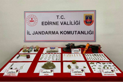 Uzunköprü İlçe Jandarma Komutanlığı, Edirne’nin Uzunköprü ilçesinin Çöpköy mahallesinde gerçekleştirilen operasyonlarda şunları ele geçirdi: 90 gram skunk, 20 adet uyuşturucu hap, 15 gram tütüne emdirilmiş uyuşturucu madde, 20 gram kenevir tohumu, bir adet uyuşturucu madde öğütme aparatı, 6 adet uyuşturucu madde kullanma aparatı, 3 adet metal arama dedektörü, 37 adet sikke, 22 adet metal obje ve bir adet Osmanlı dönemine ait mühür.