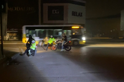 Bir polisin yaralanmasına neden olan plakaları gizli 2 motosikletli hızla kaçarak izlerini kaybettirdiler. Polisin dur ihtarına uyumayıp yaralanmasına neden olan anlar ise amatör kameraya yansıdı.