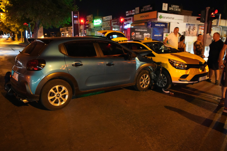 Kaza, Edirne Sabuni Mahallesi Atatürk Bulvarı Orduevi mevkisinde meydana geldi. Edinilen bilgiye göre, Aybars A. idaresindeki 22 T 0187 plakalı ticari taksi ile Tezcan A. kontrolündeki 34 H** 409 plakalı otomobil çarpıştı. Çarpışmanın etkisiyle ticari taksi ve otomobil yol kenarındaki kaldırıma, ardından da trafik işaret levhasına çarptı. Meydana gelen kazada bir kişi yaralandı.