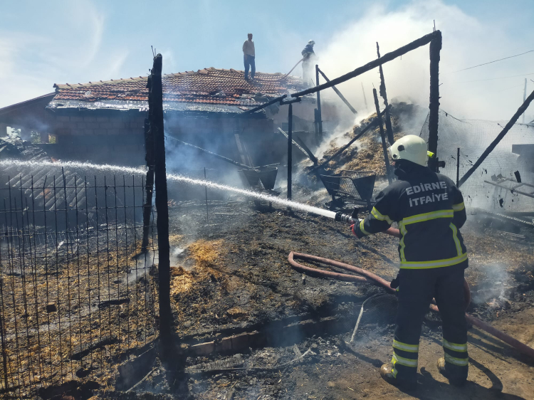 Edirne'nin Tayakadın köyünde Ersin Turan'a ait evin bahçesinde bulunan samanlık alanda yangın çıktı. Rüzgarın etkisiyle büyüyen alevler, samanların bitişiğindeki evin çatısını da sıçradı.