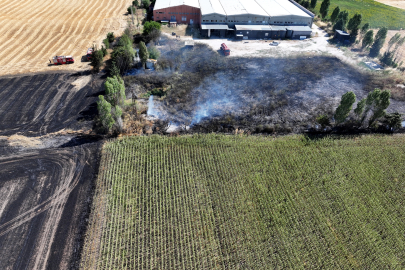 Bölgedeki tekstil fabrikasına ulaşmadan söndürülen yangında, yaklaşık 100 dekar tarım arazisi zarar gördü.