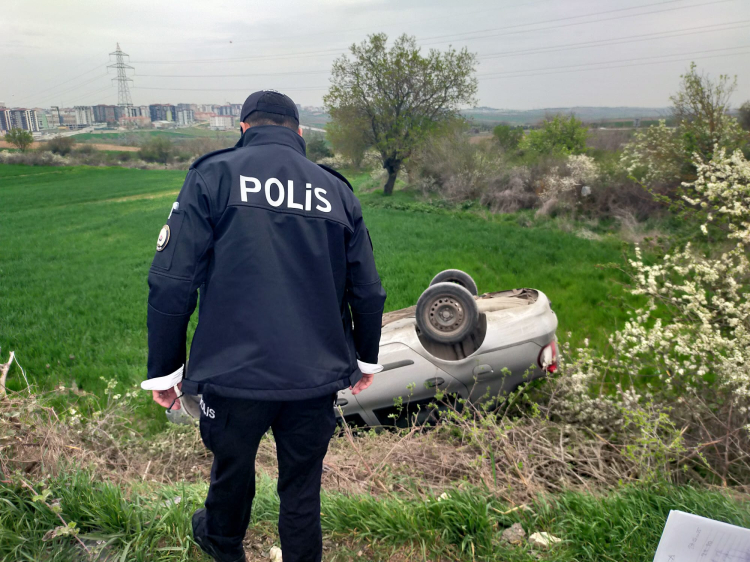 Edirne'nin Fatih Mahallesi Olimpik Yüzme Havuzu arkasında bulunan ara yolda tarlaya uçmuş otomobili görenler 112 Acil Çağrı Merkezine ihbarda bulundu.