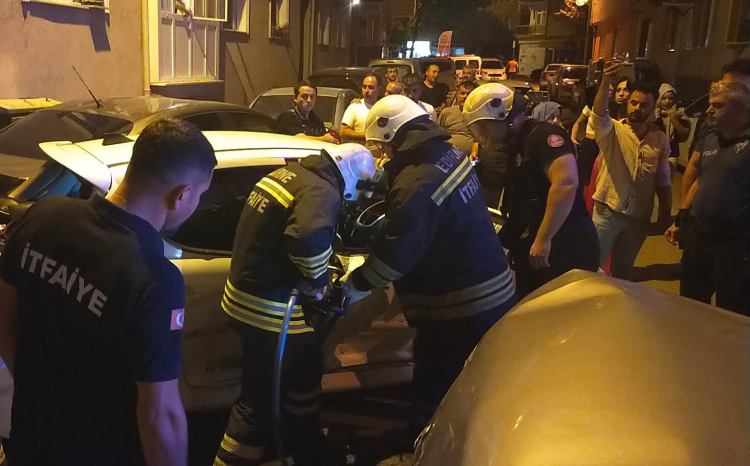 Olay yerine itfaiye, ambulans ve polis ekibi sevk edildi. Araçta sıkışan iki kişi itfaiye ekiplerinin müdahalesiyle araçtan çıkarıldı.