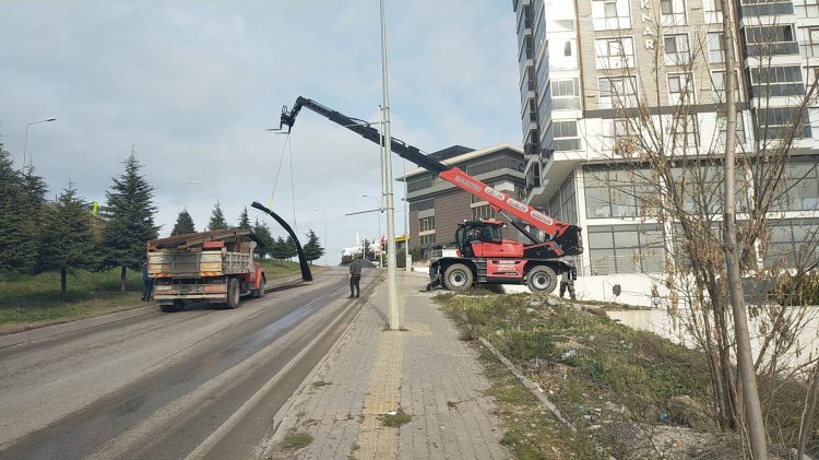 Trafiğin durma noktasına geldiği caddeye polis ekibi sevk edildi. Polis ekipleri trafik güvenliğini sağlarken, yola savrulan demirler vinç yardımıyla tekrar kamyona yüklendi.