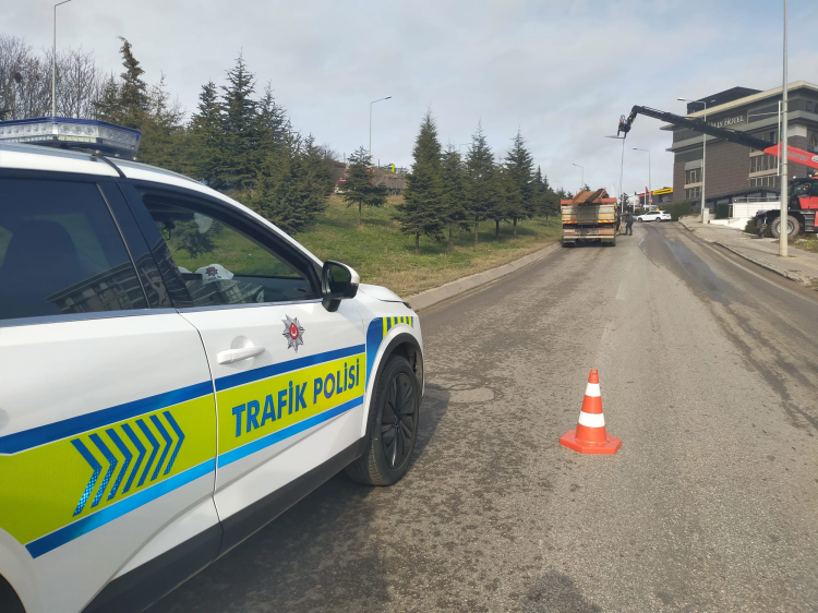 Kamyon sürücüsüne trafik kanunları gereğince cezai işlem uygulandı.