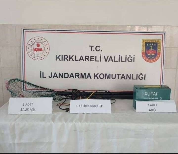 Kırklareli İl Jandarma Komutanlığı tarafından Demirköy ilçesi Balaban köyünde yapılan kontrolde dere içine elektrik akımı vererek balık avı yapan iki şahıs suçüstü yakalandı. Şahısların üzerinde ve alanda yapılan aramada; 1 adet akü, 1 adet balık avlamak için ağ sistemi ve 7 adet ölü alabalık ele geçirildi.