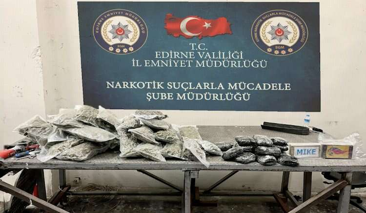 Edirne Emniyet Müdürlüğü ekipleri, yurt dışından Türkiye'ye giriş için sınır kapısına gelen bir TIR’da arama yaptı.