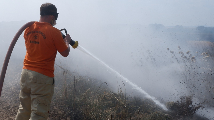 Edirne'nin Avarız Köyü'nde hasat edilmemiş buğday tarlasında çıkan yangın, rüzgarın etkisiyle diğer buğday tarlalarına da sıçradı.