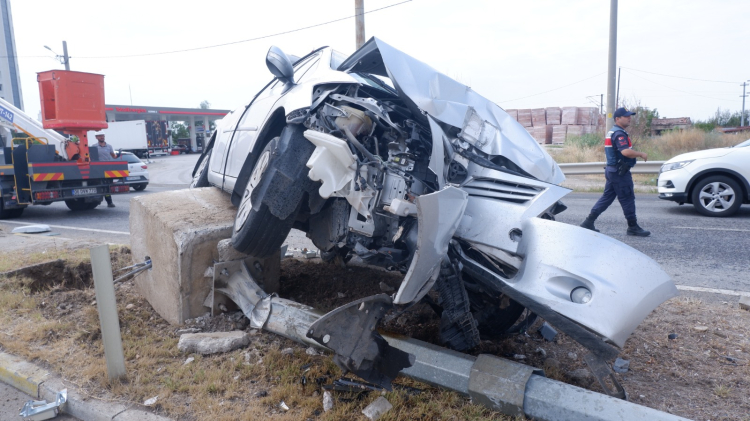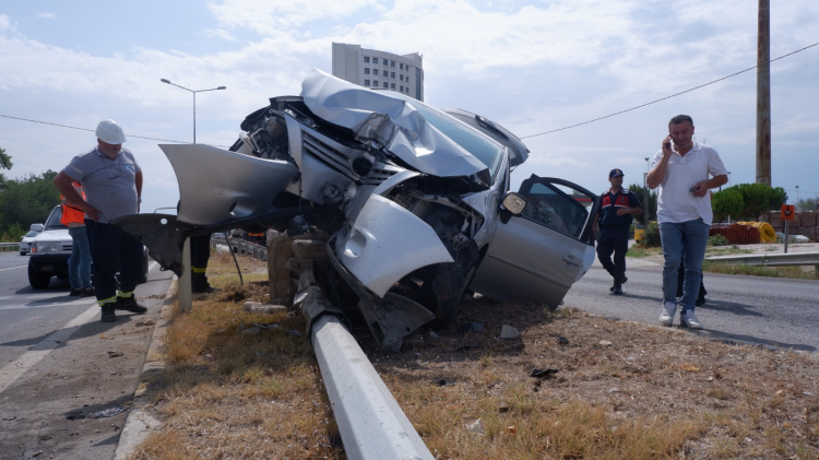 Ağır hasarlı otomobil, vinç yardımıyla kaza yerinden kaldırıldı. Jandarma kazayla ilgili inceleme başlattı.