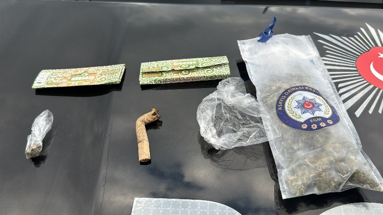 Kovalamaca sırasında şüphelilerin araçtan attığı tespit edilen poşette 30 gram esrar ve içime hazır sigara ele geçirildi.
