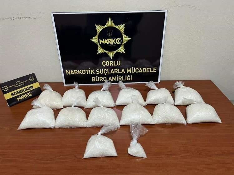 6 aylık süreçte yapılan 2 ara yakalamalarda, 14 adet şeffaf poşette 6 kilo 800 gram metamfetamin maddesi, 3 adet şeffaf poşet içinde 2 kilo 500 gram eroin maddesi ele geçirildi.