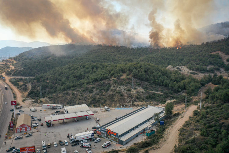 Yangının ilerlemesini durdurmak için bölgedeki bazı ağaçlar, orman işçileri tarafından kesiliyor ve belirli noktalarda arazözler bekletiliyor.