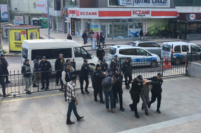 Polislere mukavemette bulunduğu iddia edilen şüpheliler, geniş güvenlik önlemleri altında Çerkezköy Adliyesine getirildi.