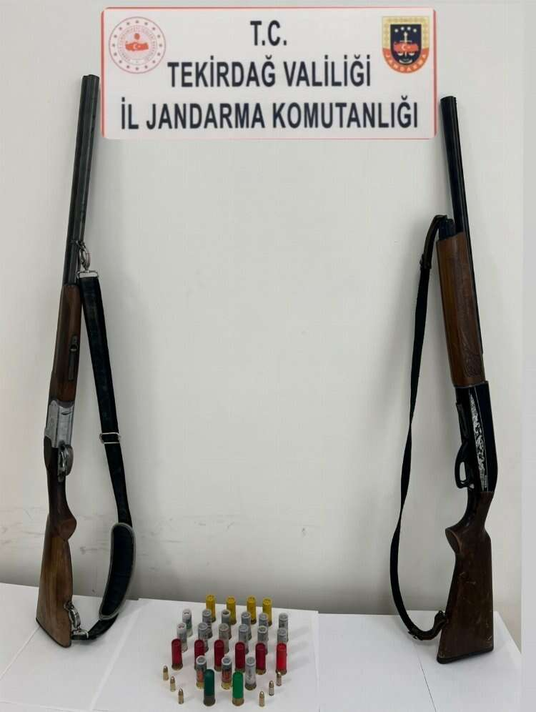 Çerkezköy ilçesinde yapılan Yol Emniyet ve Kontrol uygulamasında durdurulan araçta dışarıdan gözle yapılan kontrolünde gözle görülür vaziyette 1 adet av tüfeği, 1 adet yivsiz av tüfeği ve poşet içerisinde 27 adet çeşitli yivsiz av tüfeği fişeği tespit edildi. Olayda V.B. isimli şahıs hakkında idari yaptırım uygulandı.
