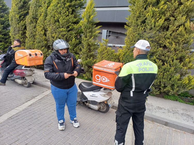 Edirne’de bugün trafik ekipleri kuryelere yönelik denetim gerçekleştirdi. Bir alışveriş merkezi yanında bulunana kuryeler için ayrılmış alana gelen trafik polisleri, motokuryelerin belgelerini denetledi. Kuryelere park yerinde denetim yapan ekipler, kuryelere yönelik denetlemelerin yanında, trafikte dikkatli olmaları yönünde uyarılarda bulundu.