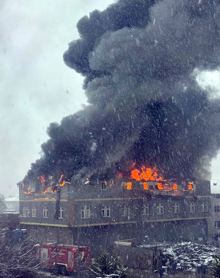 Yaklaşık 2 dönümlük alanda faaliyet gösteren fabrikadaki yangına itfaiye ekipleri müdahelede bulunuyor.